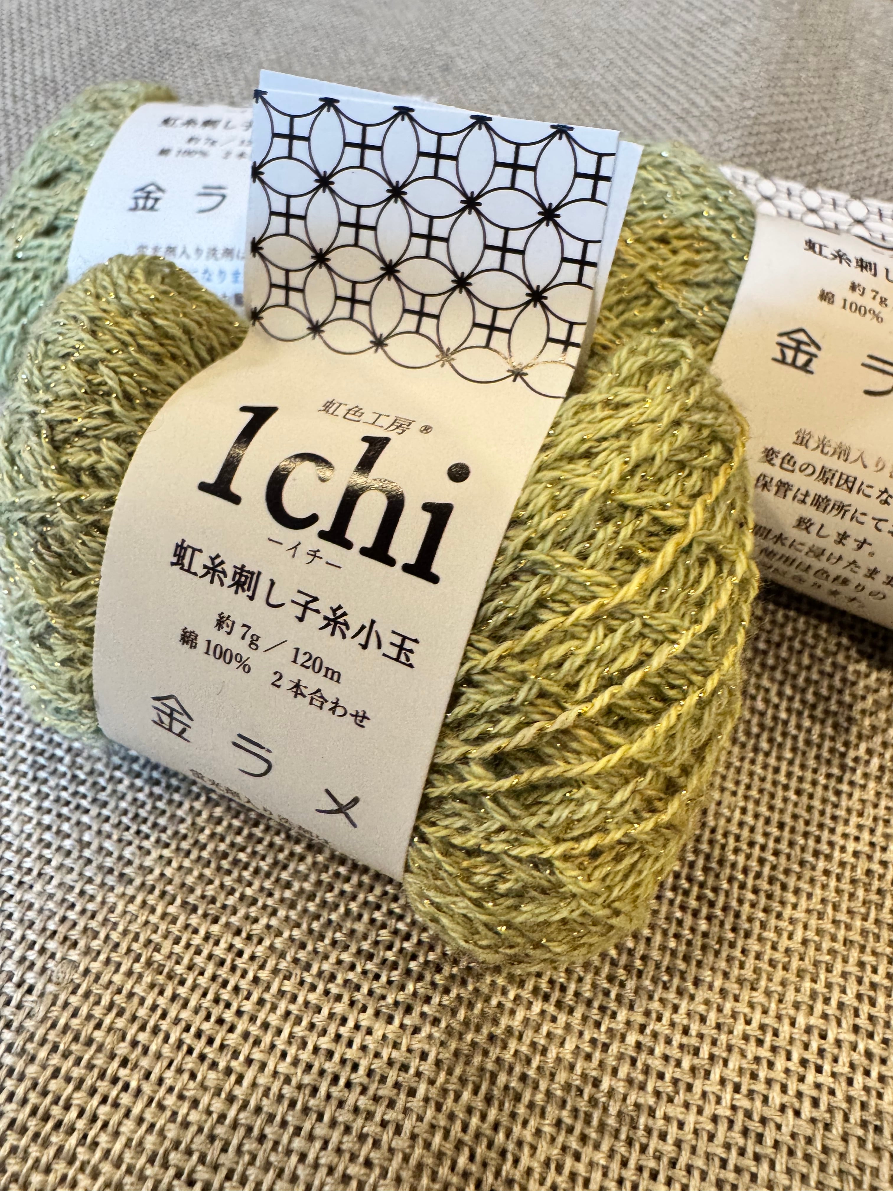 2本合わせ刺し子糸小玉金ラメ入りです